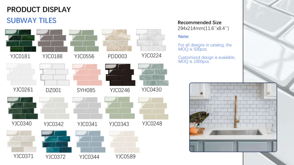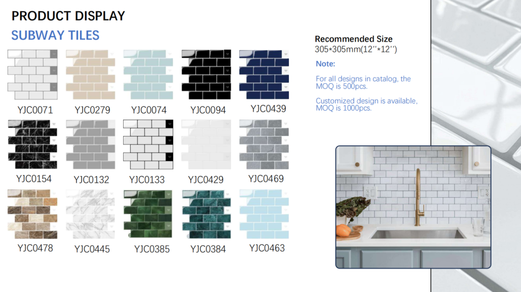 Home Jiangxi YiJunCheng Industrial Co., Ltd.is a 21-years-old factory which can design, develop and sell customized more>>> company products PRODUCT DISPLAY RECTANGULAR TILES